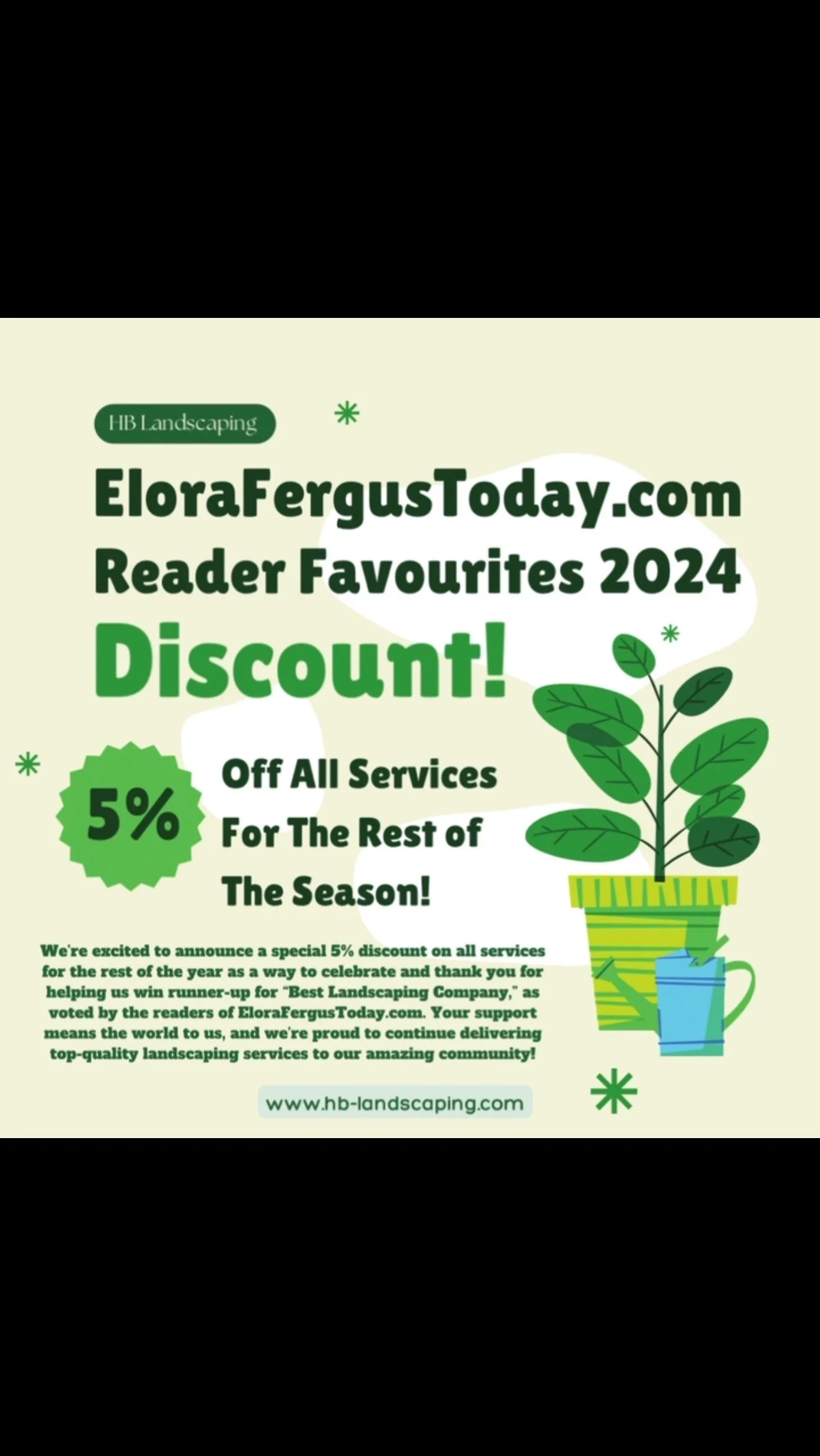 “Thank you all for helping us achieve Runner-up for “Best Landscaping Company” in Centre Wellington, voted by all of you in EloraFergusToday.com’s “Reader Favourite Awards ‘24”. We see this less as an accolade and more of a token of motivation for the future, to stay on this path we’ve paved thus far and continuing to grow and expand as a company. We’re very thankful for the amazing customers we’ve had the pleasure of working with over our first 3 years, and to all of our current and past employees as we couldn’t have achieved any of this without their hard work and contributions. Looking forward to 2025!” - Carlen Golding